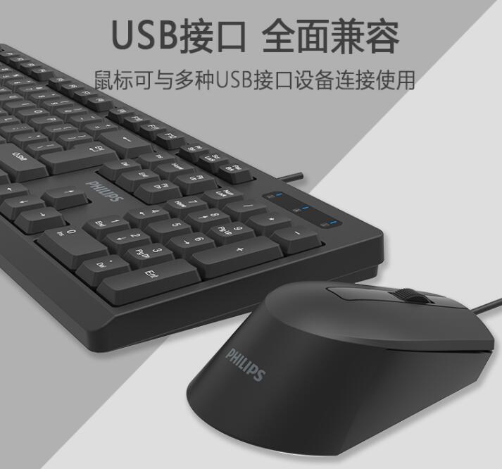 飛利浦SPT6234有線辦公鍵鼠套裝 筆記本臺(tái)式電腦USB商務(wù)鍵盤鼠標(biāo)