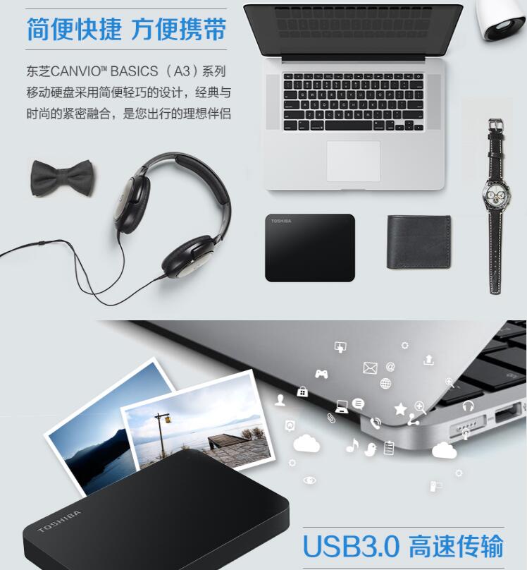 東芝移動硬盤A3新小黑4T高速USB3.0 4TB2.5英寸PS4外接硬盤防震